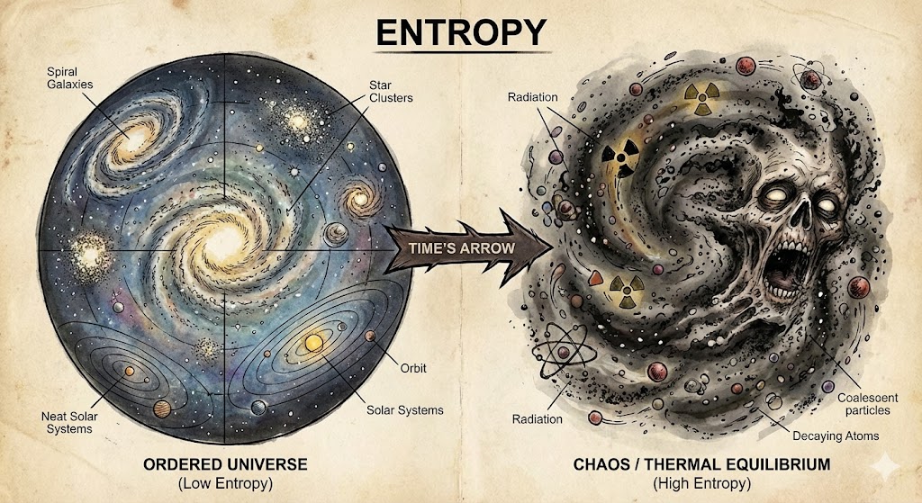 Bu teoriyi anlamak için önce 19. yüzyıl fizikçisi Ludwig Boltzmann'ın termodinamik yasalarına bakmalıyız. Evrenin temel kuralı şudur: Entropi (Düzensizlik) daima artar. Evren, düzenli bir halden düzensiz bir hale doğru gider.